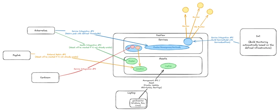 Rather than duplicating monitoring or forcing standardization, Acentix integrates existing tools and domains directly into Ceeview, allowing service models to reflect reality — not theory.
