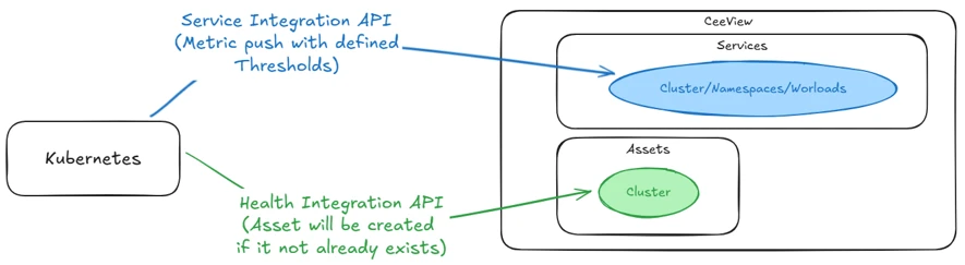 Using the Kubernetes API alongside Ceeview’s Service Integration and Health APIs, Acentix auto-generates service models that reflect:
