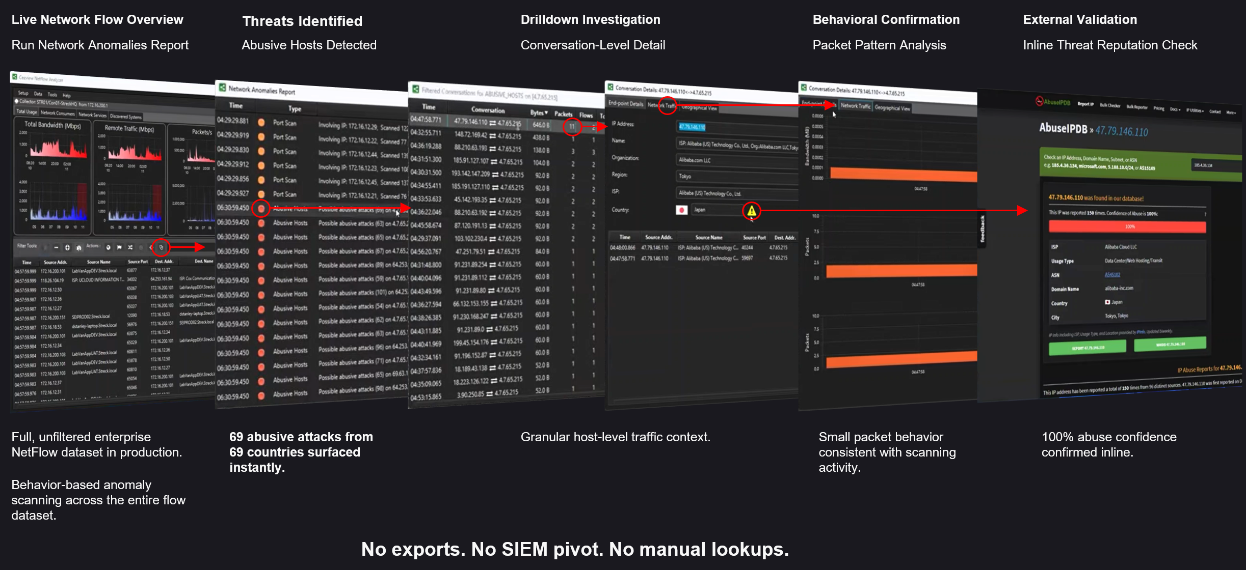 Both resources highlight how operators can move from raw network flow data to meaningful investigation and understanding in minutes.